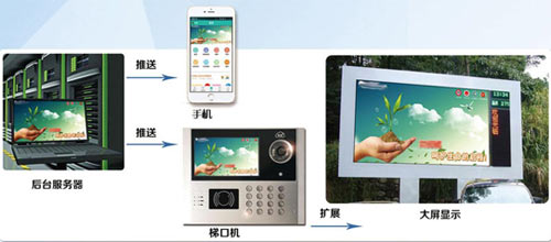 以安居乐梯口机、移动终端作为载体,为用户提供基于云联平台音视频服务,从而形成低成本、易推广的精准社区广告传播联盟。