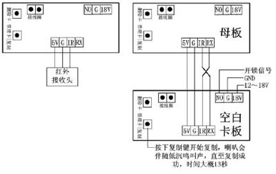 注:空白刷卡板是指没有卡数据的板,如果有数据在复制中会自动清除数据。这个功能也可以用于更换主机板时把卡数据复制到新的刷卡板上,但是要注意操作,否则会清除原来的数据。