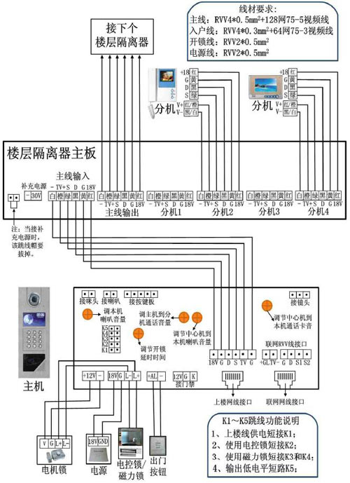 主干线:10层以下布RVV4*0.5mm2+75-5视频线,