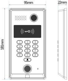 门口机功能: 可接室内机, 可实现呼叫、视频传输、双向对讲、开锁功能。